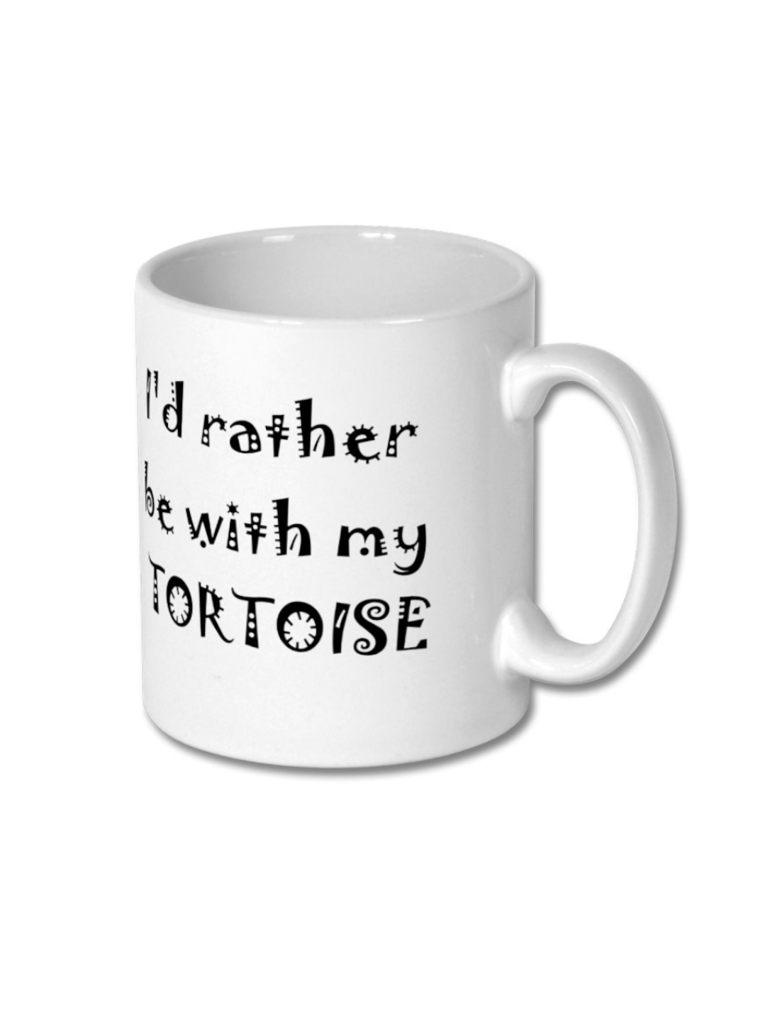 Embrace your love for tortoises with our 'I'd Rather Be With My Tortoise' Mug. Crafted in a playful font, the words express your passion in style. Made from durable ceramic, it's perfect for your favourite beverages. Ideal gift for yourself or tortoise enthusiasts, this mug makes a statement to show love for these magnificent creatures – get your mug today!