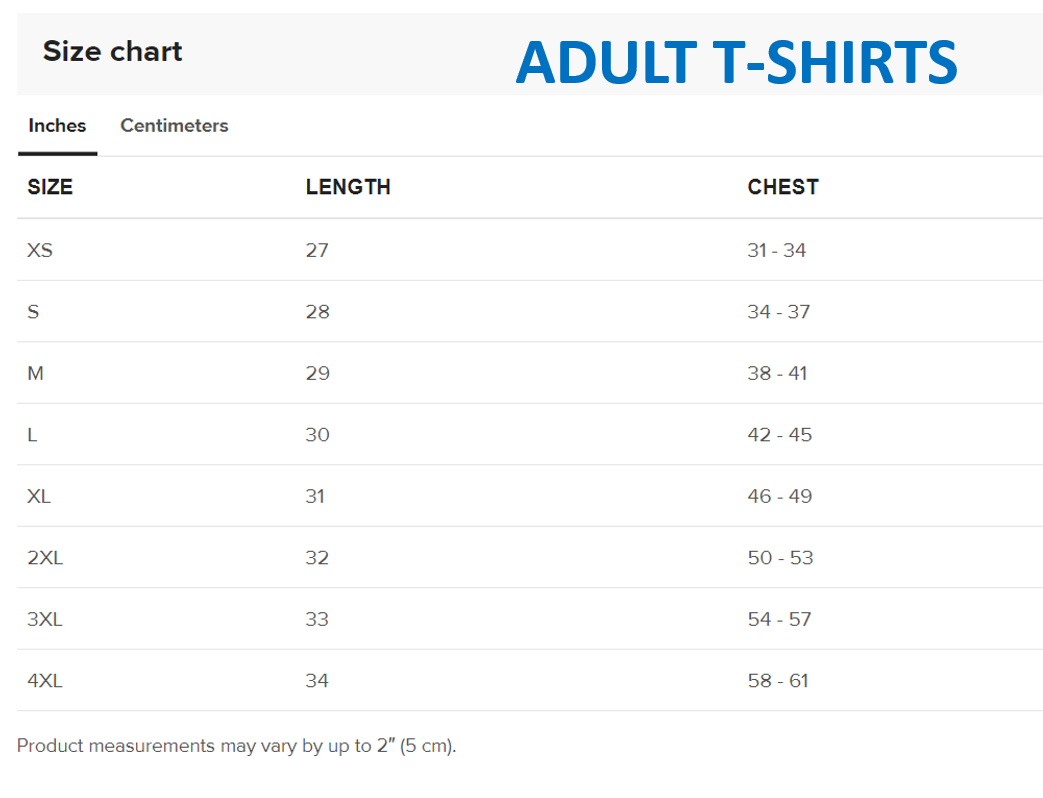 Please be sure to check our sizing chart before ordering to avoid disappointment. Our "adult" t-shirt is unisex so ladies may wish to choose a size down from their "normal" size. If you require a different size, please contact us first before placing your order to discuss options.